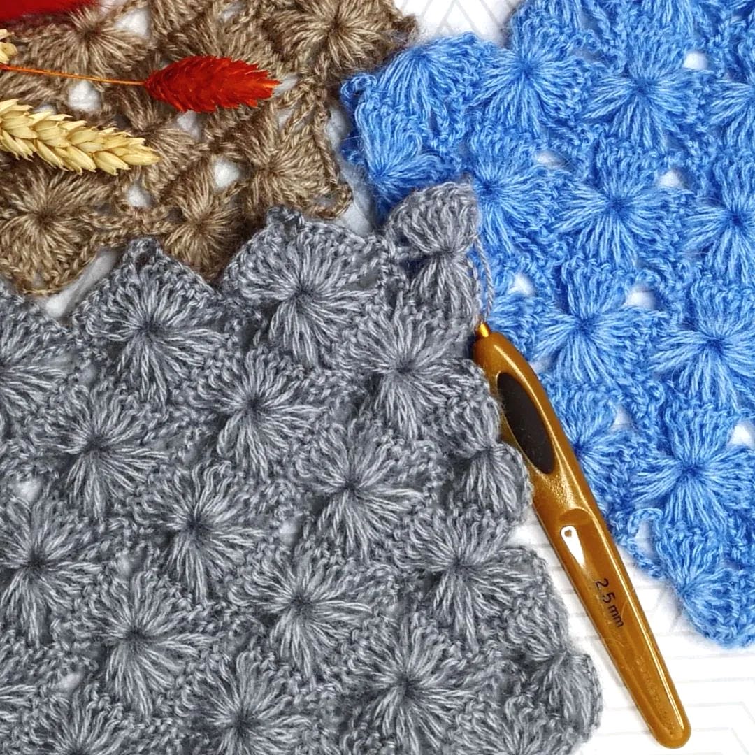3 farklı renkle örülmüş halini göreceğiz önce. Kahverengi, mavi ve gri. Krem rengi iple de çok güzel olur. Pembe tonları yada açık mavi tonları çok yakışır. Simli angora ipler pullu angora ipler kullanabilirsiniz. Yine farklı iplerle yukarıda saydığımız birçok örgüde modeli kullanabilirsiniz.